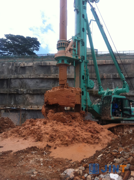 近日,在深圳航天科技大厦工地上,上海金泰SH36多功能钻机提交了一份满意的“答卷”。该工地地下0-25m为残积土(含高岭土遇水崩解,易塌孔)、 25-59m为强风化花岗岩,地层情况较为复杂,施工时要求做到高效入岩,同时控制好稳定性,解决易塌孔的问题,且桩径2600mm,施工难度很高。施工单位通过分析对比,决定采用上海金泰SH36多功能钻机,配置540机锁钻杆、2600截齿双底筒钻,很好地解决了施工难题,实现了30小时成桩的施工效率,创造了该地区施工的新纪录。