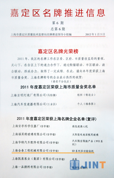 SD系列多功能钻机再次荣登“上海名牌”榜