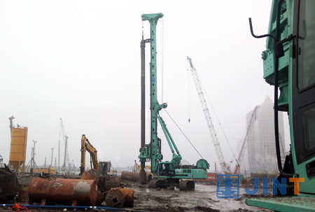 据负责现场施工的企业负责人介绍,该项目去年年底开工初期,先后有国内外十余家厂商、数十台旋挖设备陆续进场试桩,后或因设备型号不匹配或综合效率无法满足施工要求,相继怅然离场。上海金泰的主流旋挖“力挫群雄显身手,大浪淘沙始到金”,以其施工效率、入岩能力和性能稳定等优势,令同行设备望尘莫及、“望金兴叹”,目前,在现场的三台SH30和一台SD28自开工以来以每台每日两桩的效率打下近900根桩径800mm-1200mm、桩深40m的桩孔。