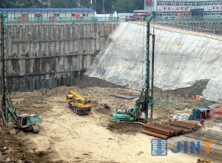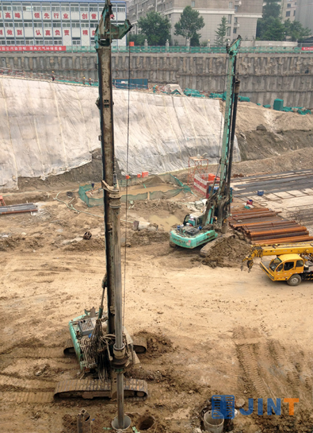 这是北京燕翔饭店改扩建工地,3台上海金泰SD12旋挖钻机运作不息,为这座超五星级酒店按时完工进行桩基础施工。SD12是幸运飞行艇168体彩网|最新--开奖记录、飞艇168号码结果查询、168飞艇现场统一开奖直播有限公司研制的小型旋挖钻机产品,自2007年上市以来累计制造销售近100台,由于其整机操作灵活、施工效率高、维护方便,深受国内外用户青睐和好评,在各类市政工程、工民建等的中小型桩基础施工中发挥着主力军作用,展示着上海金泰产品品质和企业的实力。