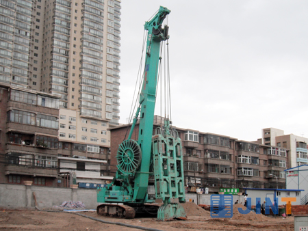 “鸿运•金茂”工程设计槽深30米,宽0.8米,地下两米即是沙砾层,沙层下还有中风化泥岩,最大砾径达1米,施工难度非常大,经多方研讨,亚洲最大的液压连续墙抓斗SG60被设计和施工单位定为解决施工“疑难杂症“无法替代的理想机型。