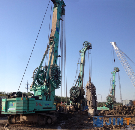 SG抓斗在南水北调工程中担当“主角”绝非第一次:早在中线的汉江枢纽工程期间,就有32台金泰的抓斗承担了25万方围堰防渗的施工任务,占总工量的95%,壮观的场景令业界叹为观止;禹州的长葛段内多为膨胀土地层,为克服膨胀土明渠渠坡处理这一世界性难题,施工单位专门选用了金泰的SG系列抓斗直抓成方槽,在采取泥浆护壁后,将钢筋笼整体一次性吊装入井,再通过水下直升导管法进行混凝土浇筑成桩,此种工法在该标段取得了创新性的成效。