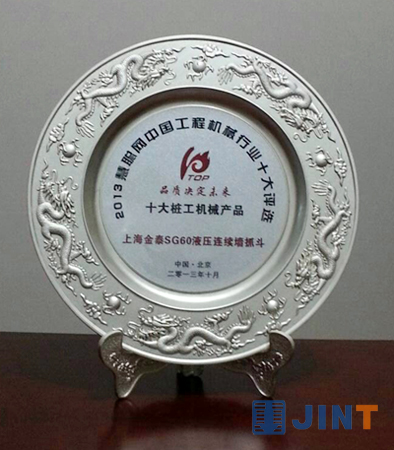 上海金泰SG60液压连续墙抓斗荣登2013年中国工程机械行业十大评选活动的“十大桩工机械产品”榜单。