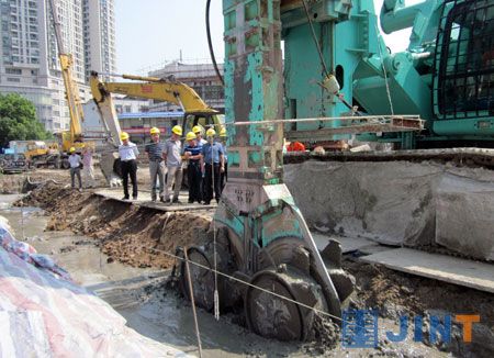 8月2日,上海金泰SMC工法研讨暨液压铣削搅拌钻机工程示范现场会在福州召开。有来自福州,厦门,江浙等地的基坑设计专家、基础施工企业负责人一行三十余人顶着酷暑,观摩了上海金泰SC35B双轮搅拌钻机在福州台江广场基坑维护水泥搅拌墙的施工示范。随后,与会嘉宾就SMC工法发展及应用前景与上海金泰公司总经理林坚及有关研发人员进行了交流和研讨。