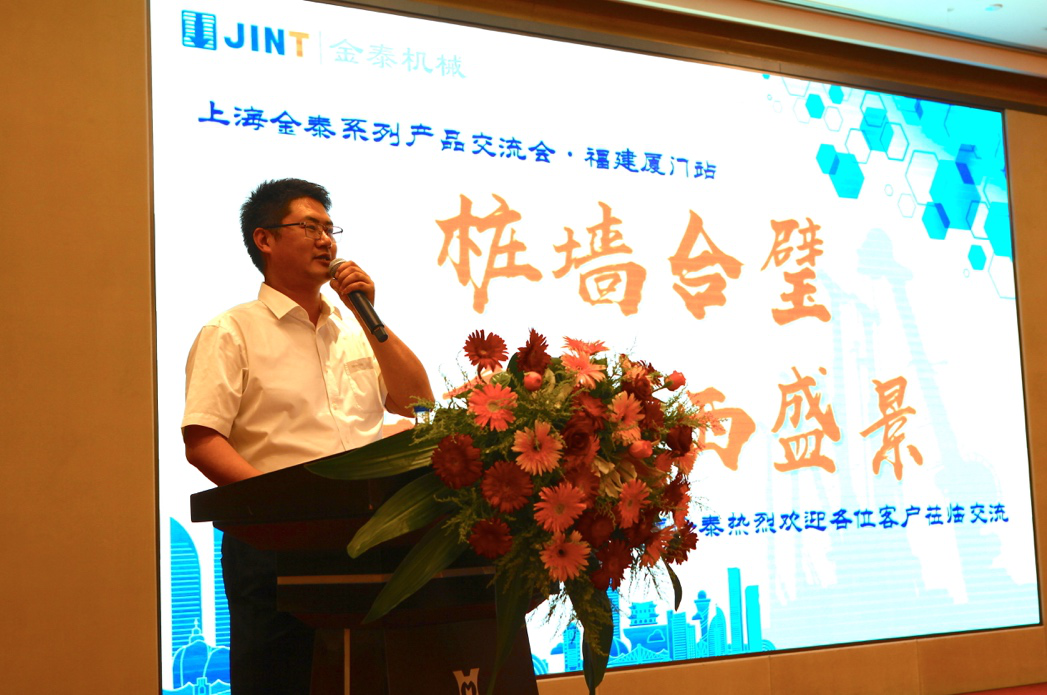 技术交流开始前,公司董事副总经理徐峰对本次会议致上了欢迎辞。他说道:“今天,我们在这里举办金泰系列产品技术交流会,目的就是希望将金泰多年来的研发和创新成果与在座的各位专家和基础施工行业同仁分享,同时希望通过交流与探讨,能让金泰产品配合新工艺新工法为福建的基础施工领域的新老朋友提供更加高效和经济的施工解决方案。”