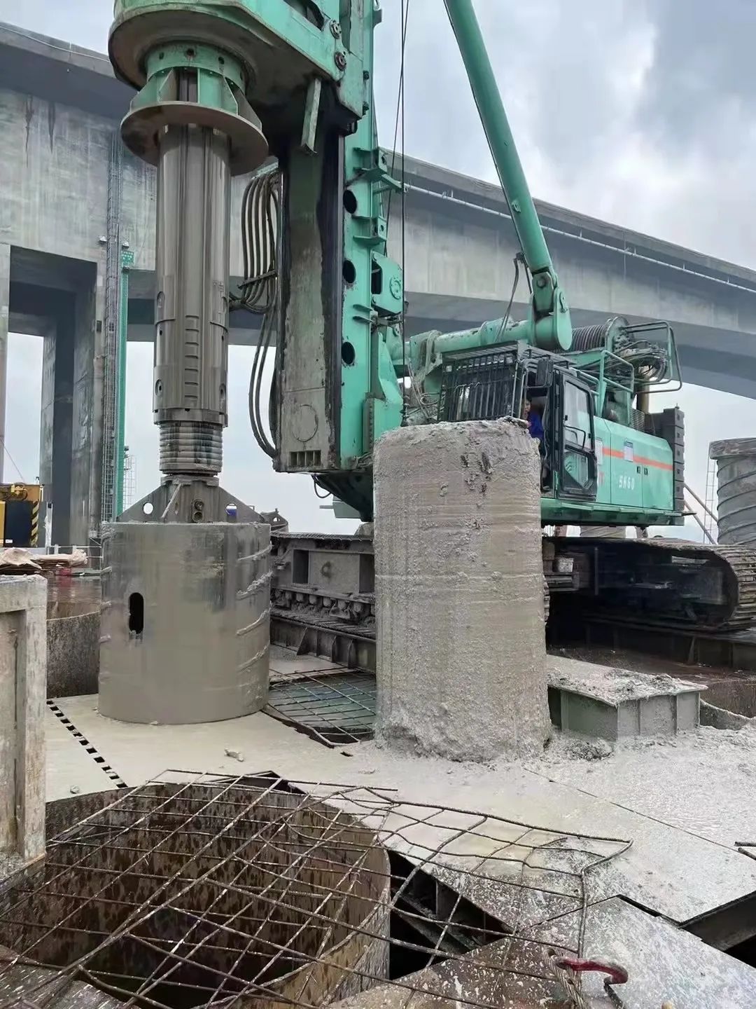 金泰大型旋挖钻机SH60、SH46A具备上述施工所针对的大、深、硬条件。如图所示,金泰SH60和SH46A旋挖钻机在深层钻孔入岩表现极为出色,总包方对设备的施工进度也非常满意。