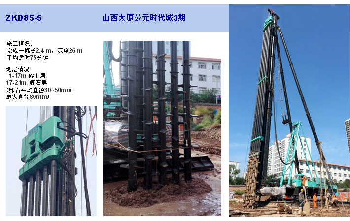 ■高效:效率是二轴搅拌施工功效的7-8倍,SMW工法的2-3倍;可以同时施工5个桩,大大减少搭接缝,提高了基坑止水效果。