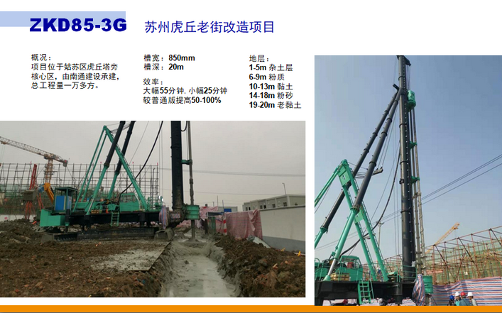 ZKD85-3G高速智能SMW工法钻机是使用SMW工法加固软土地基的施工设备,适合在城市高层建筑、地铁车站和地下室的挡土、防渗连续墙施工以及在江河堤坝、水利工程施工中进行防渗及软土地基加固等。