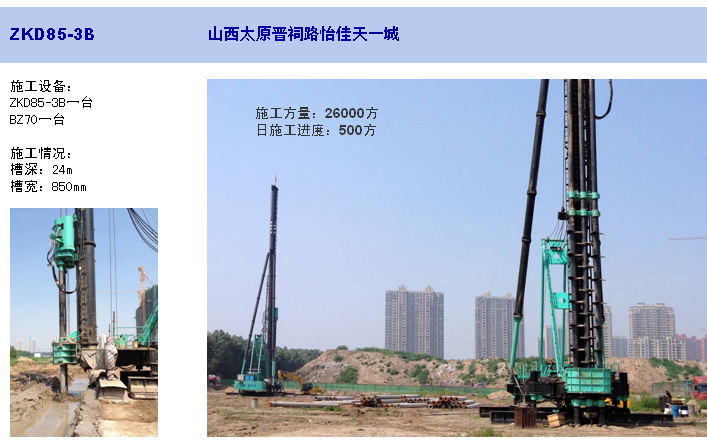 ZKD85-3B三轴钻孔机是使用SMW工法加固软土地基的施工设备,适合在城市高层建筑、地铁车站和地下室的挡土、防渗连续墙施工以及在江河堤坝、水利工程施工中进行防渗及软土地基加固等。